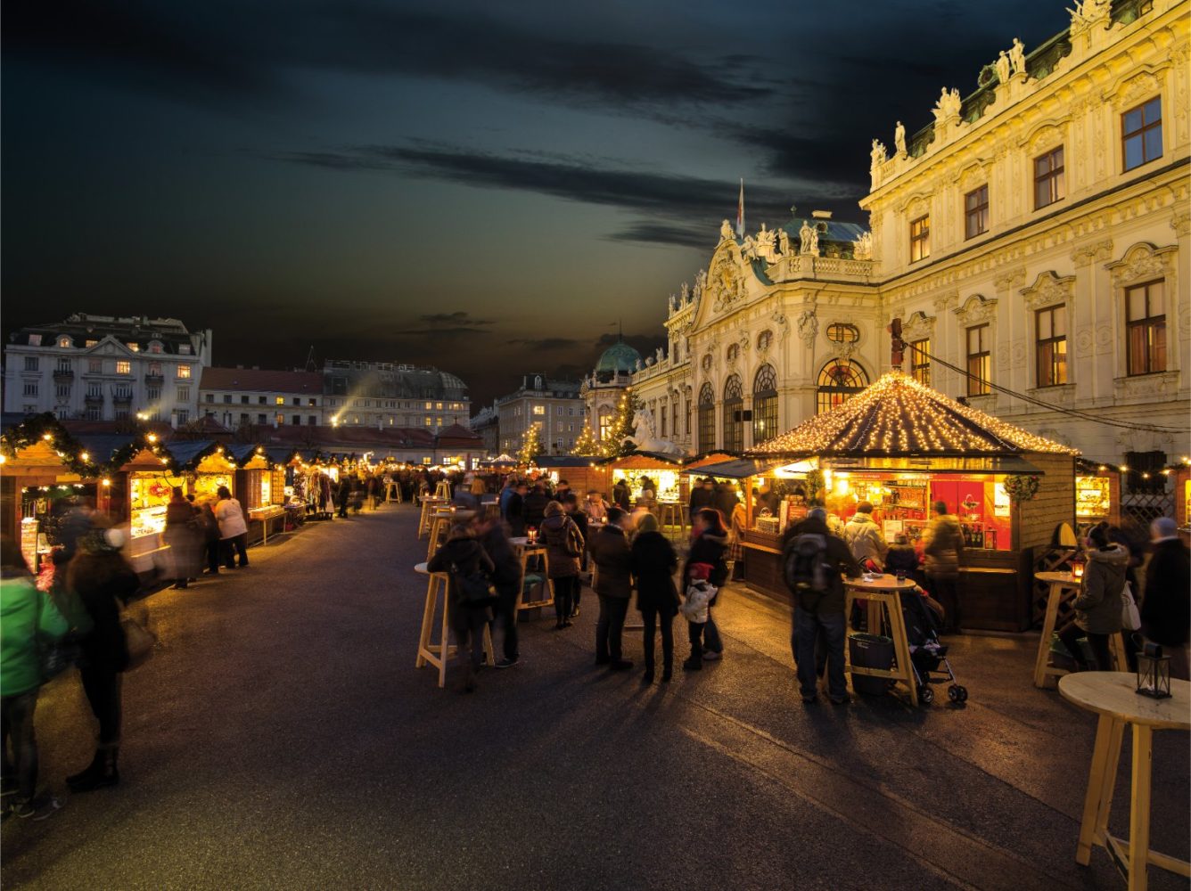 Na samom ulazu u bečki božićni sajam na Rathausplatzu posjetitelje dočekuje visoki lučni prolaz ukrašen svijećama. Tradicionalni božićni sajam nudi bogat izbor poklona, ukrasa za bor, ručno izrađenih proizvoda, gastronomskih delicija, slastica i toplih napitaka. Na Vienna Ice Worldu, ledenoj čaroliji koja se održava uz sajam, klizači mogu obuti svoje klizaljke i klizati kroz romantično osvijetljen gradski park. Posebna atrakcija za parove je Stablo srca, dok je za djecu pripremljen 12-metarski vrtuljak na više razina te pravi božićni svijet s vlakićem sobova, jaslicama, dječjom kućicom i posebno označenim klizalištem.